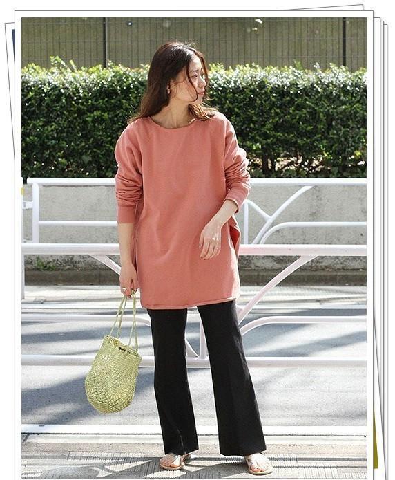 柔和的粉红色对于轻熟女人来说并不会显得过于甜美,它也能打造出明亮的春季look。它是长款的侧开叉设计,对于掩饰臀部和大腿也很有效,是梨形身材女人的上佳选择。简单搭配黑色喇叭裤,即可完成轻熟风格的造型。